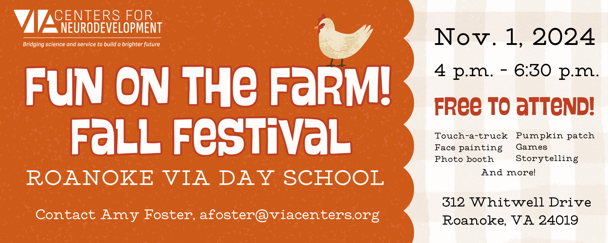 - 4 to 6:30 p.m. — Fun on the Farm! Fall Festival from Roanoke VIA Day School at 312 Whitwell Dr., Roanoke. Touch-a-truck, pumpkin patch, face painting and more.
