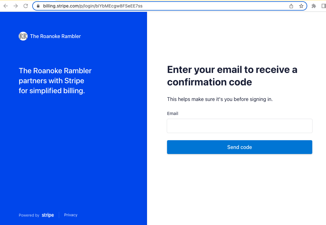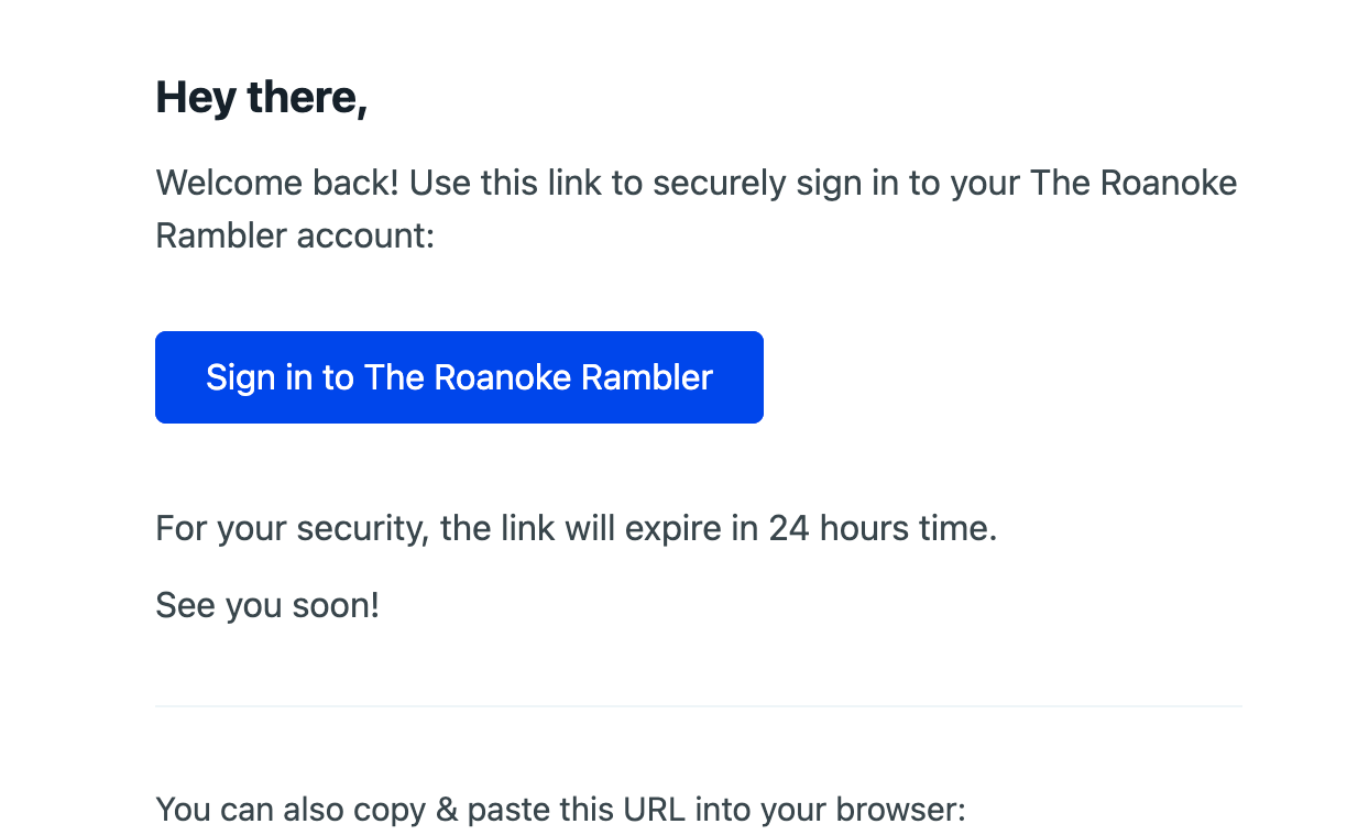 If you ever have any questions about your membership or how to access your account, please don't hesitate to reach us at editor@roanokerambler.com.