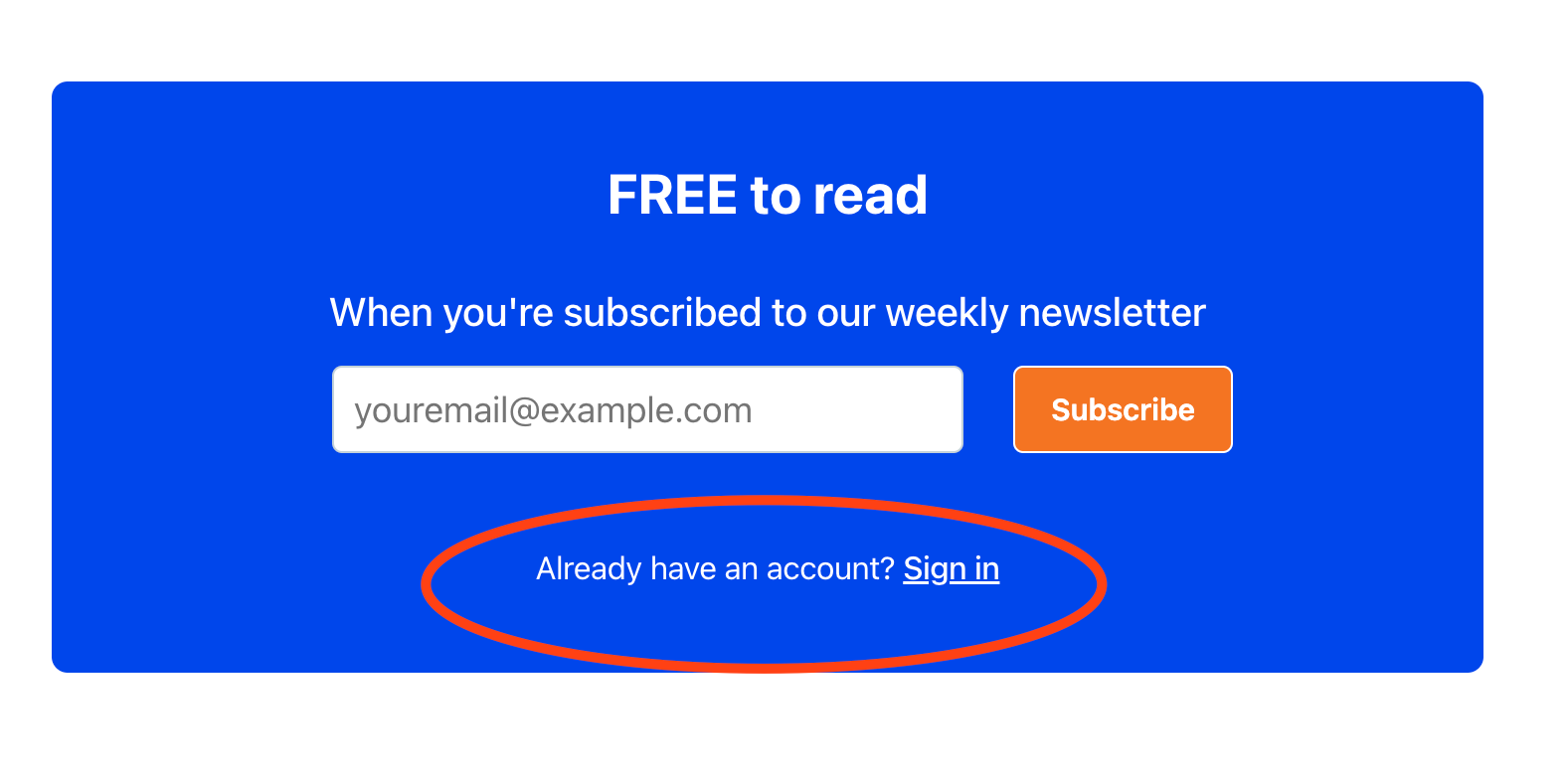 Having trouble logging in? Occasionally, a story is behind a “registration wall,” meaning you need to be receiving our weekly newsletter to read the story. If you are already a free newsletter subscriber, you can log in here or click the “Already have an account? Sign in” link at the bottom of the “FREE to read” box: