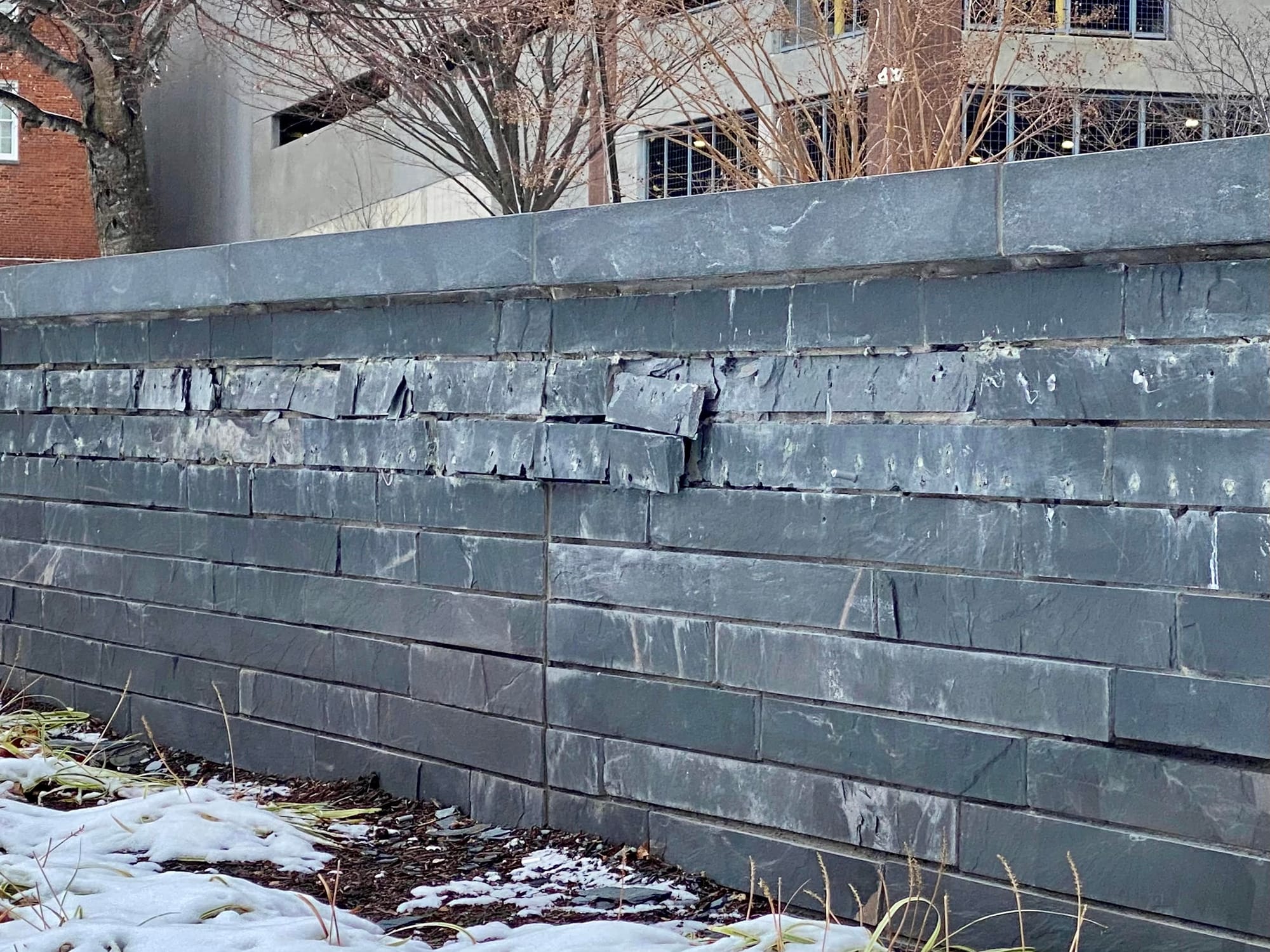 In doing so, however, the contracted workers damaged the stone backdrop, and nothing can be done until that is repaired. Karl Brockenbrough, the GSA property manager for the Roanoke building, said Monday there is not a timetable for completion.