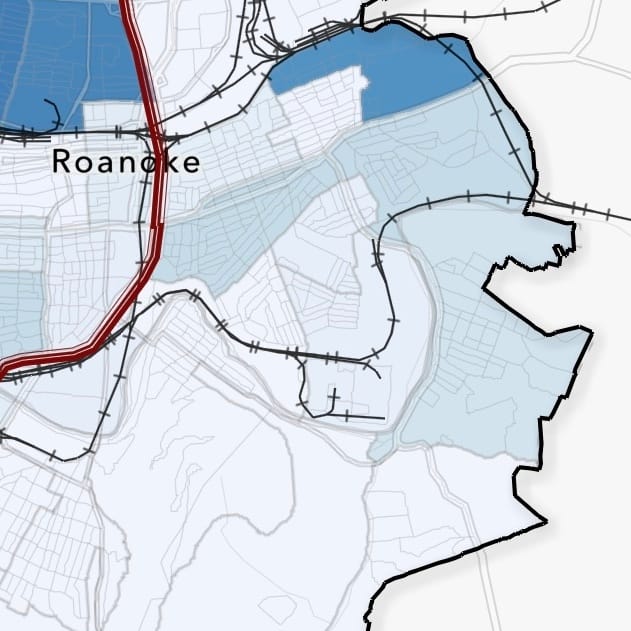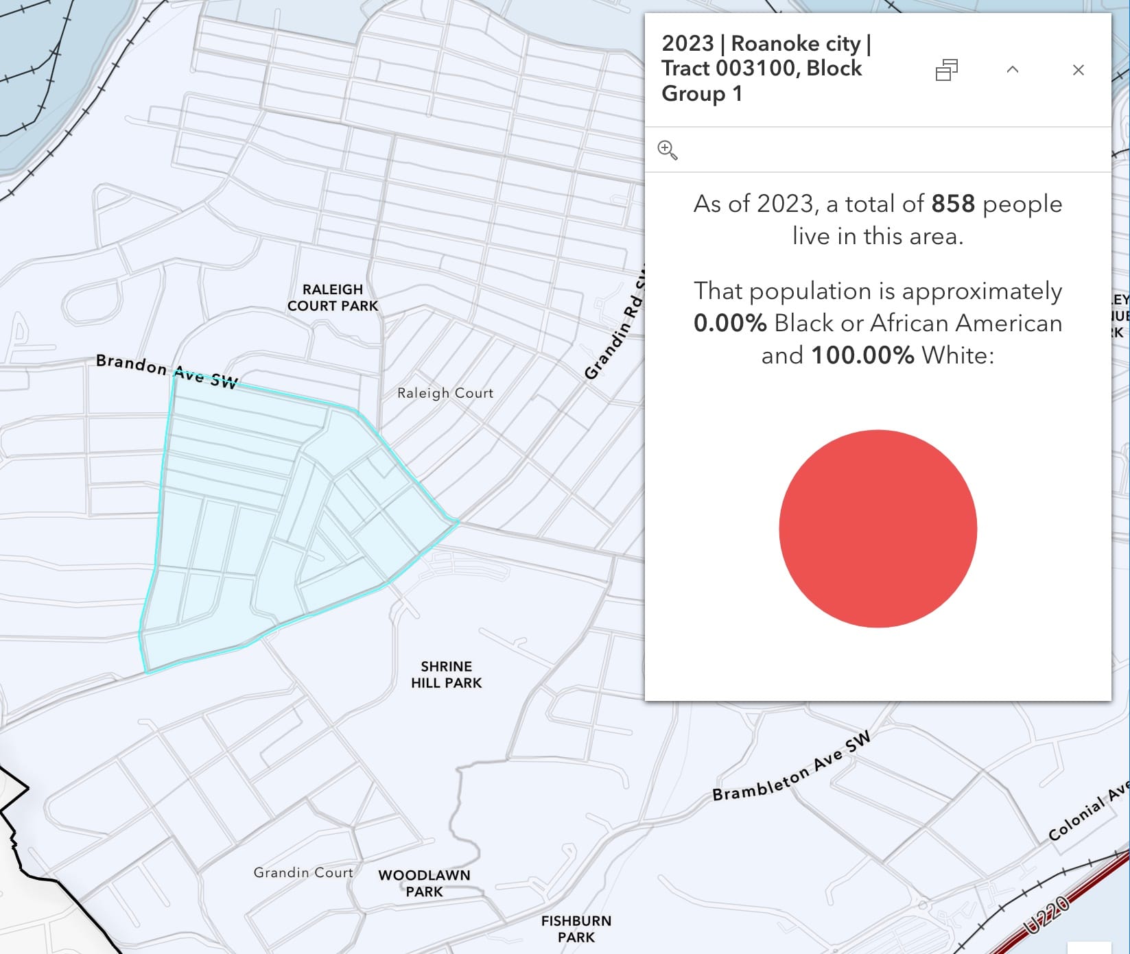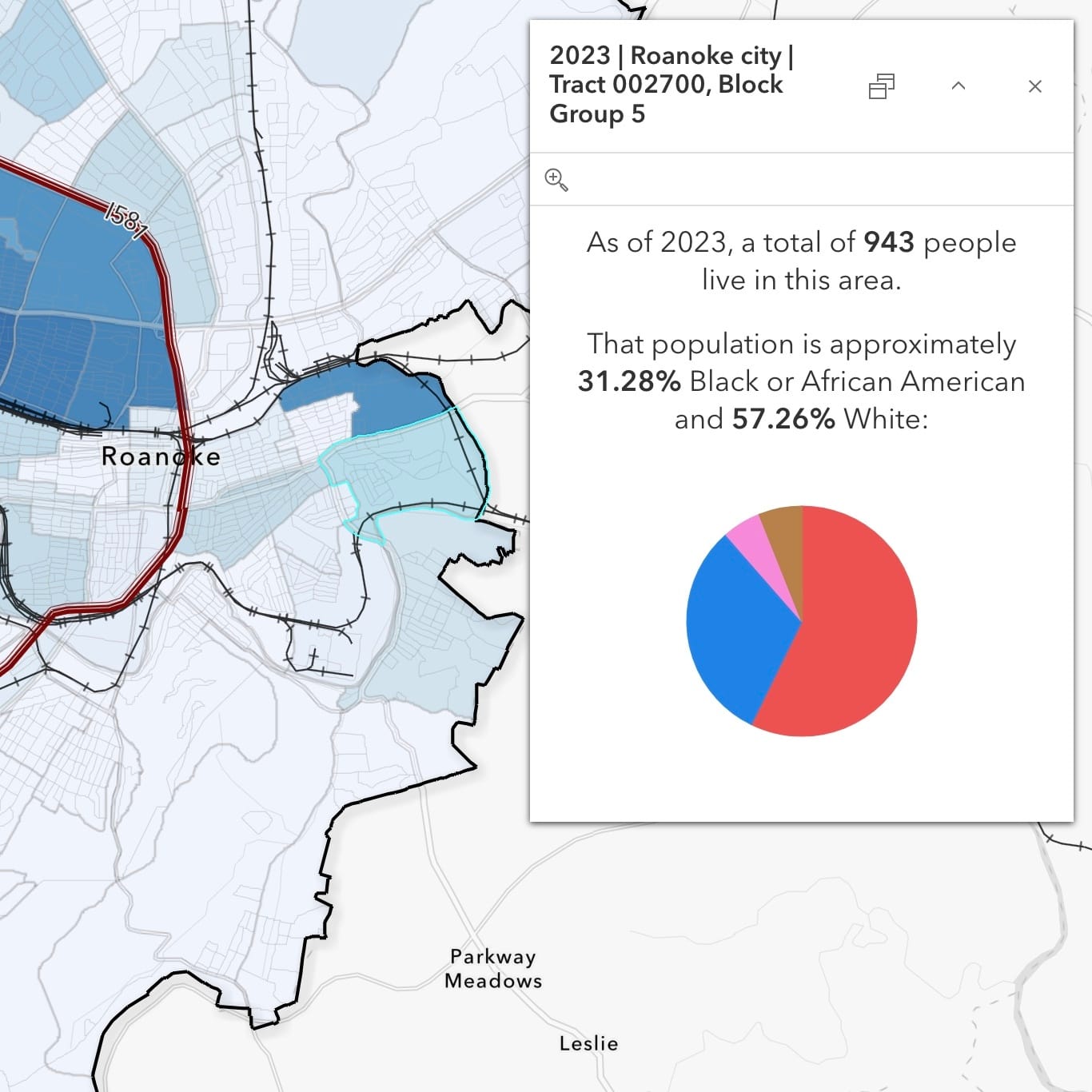 While progress is visible — including some neighborhoods where the population now mirrors citywide demographics — large portions of Roanoke remain starkly segregated. In many neighborhoods, Black residents still make up less than 10 percent of the population.